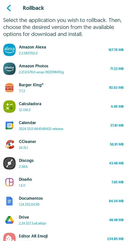UptoDown Android ti consente di effettuare il "rollback" per ogni app sul tuo cellulare. Ad esempio, supponiamo che tu abbia aggiornato l'app di Facebook alla versione più recente, ma che non ne sia soddisfatto. Nessun problema. Sostituiscila semplicemente con una versione precedente dal suo archivio su Uptodown.